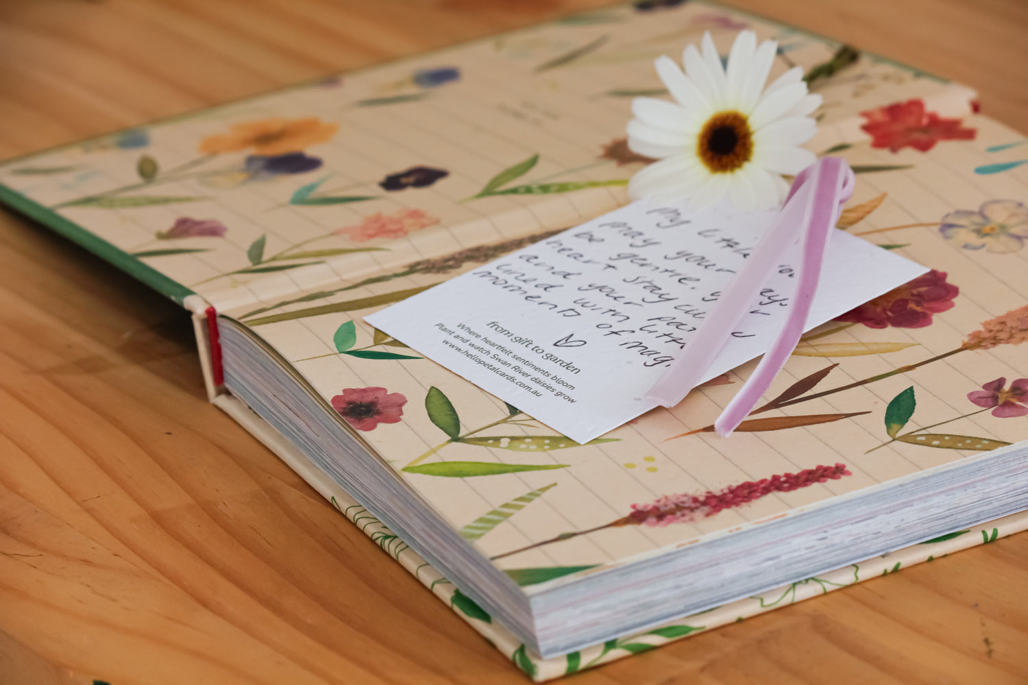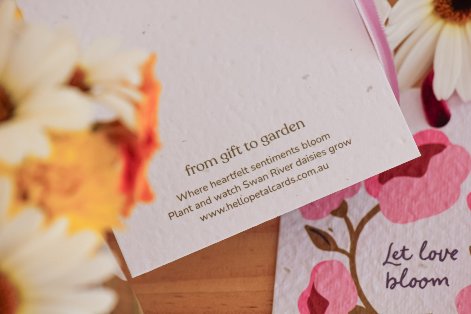 Handcrafted with recycled paper and embedded with Swan River daisy seeds, our plantable tags are designed to return gently to the earth. Once gifted, simply nestle the paper into soil, water with care and in time, wildflowers will emerge — a tender reminder that even the smallest gestures can grow into something lasting.