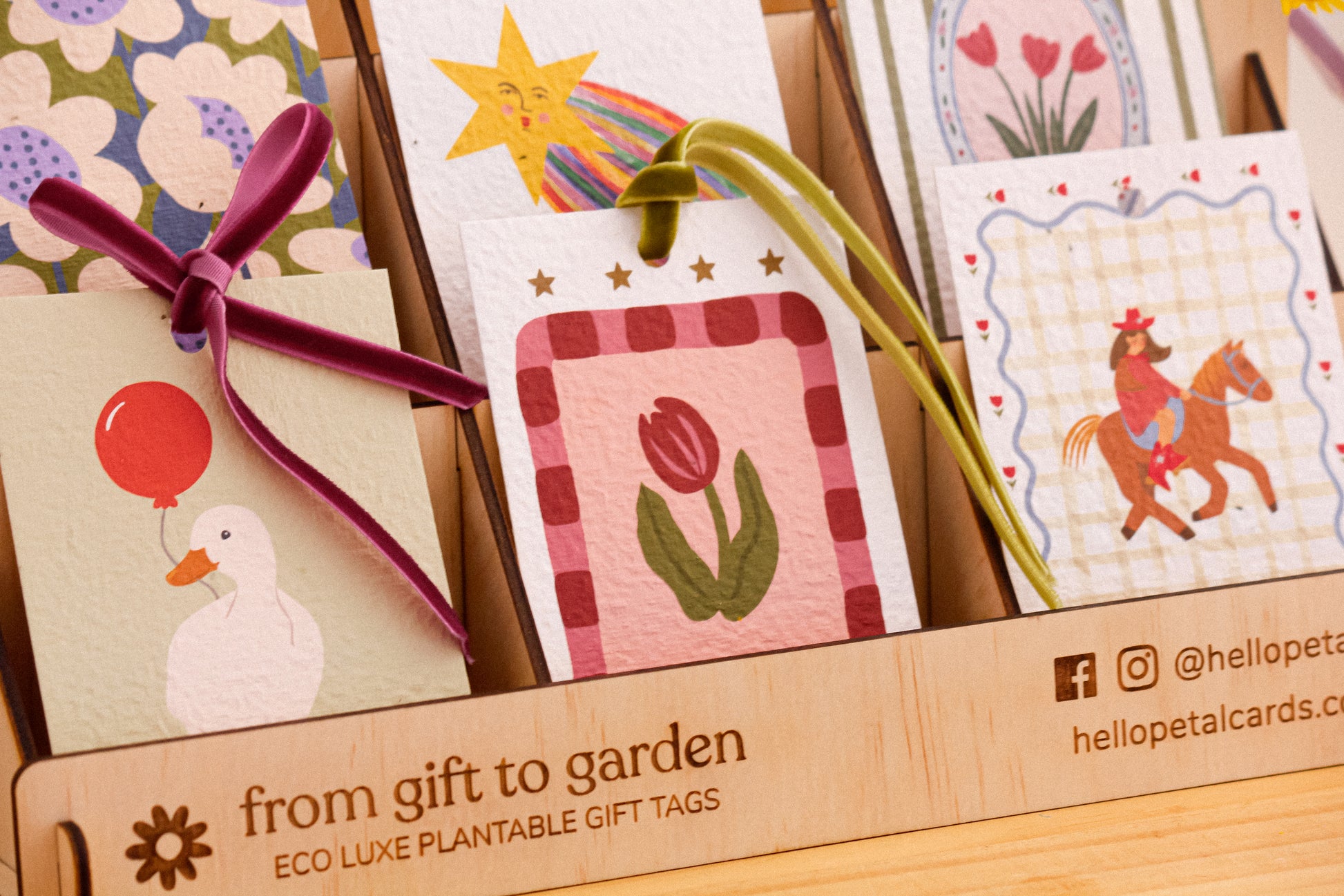 Thoughtfully designed to keep your Hello Petal gift tags organised and beautifully presented, this stand supports your display needs while adding a refined touch. Preorder now to create a welcoming and polished showcase for your collection.