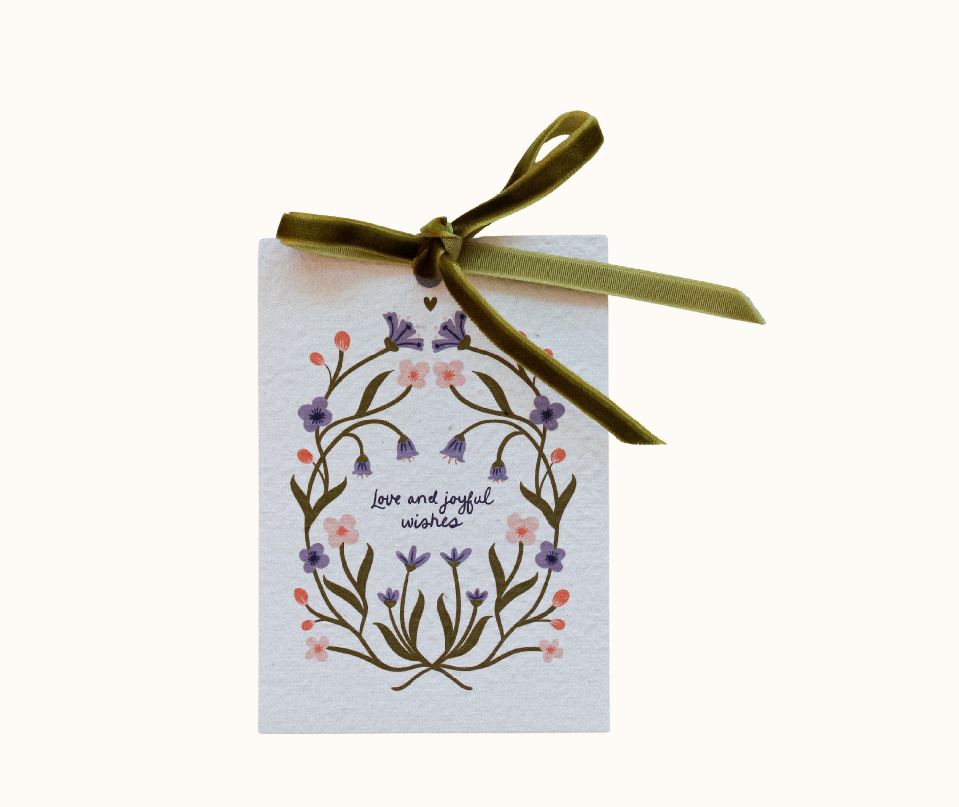 • 1x plantable gift tag, tied with a velvet ribbon (colour selected at random)